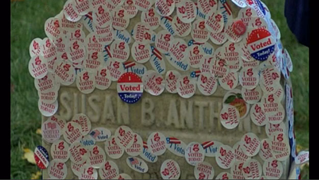 In one last bit of election-related news, I'd like to share this picture of Susan B. Anthony's grave covered with "I Voted" stickers: